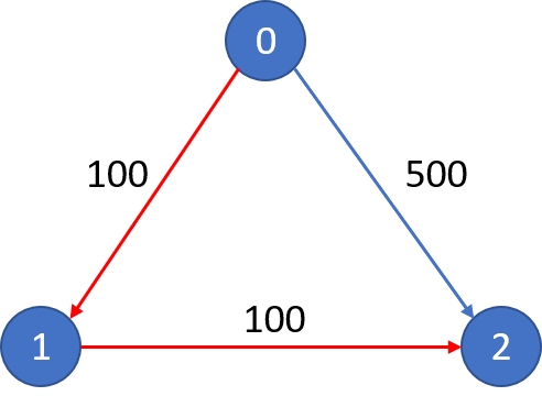 Input: n = 3, flights = [[0,1,100],[1,2,100],[0,2,500]], src = 0, dst = 2, k = 0