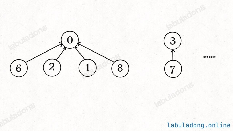 这样,你应该大概明白什么是动态连通性了,Union-Find 算法的关键就在于 union 和 connected 函数的效率。那么用什么模型来表示这幅图的连通状态呢?用什么数据结构来实现代码呢?