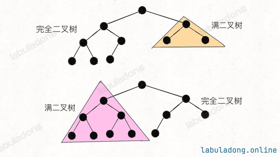 }结合刚才针对满二叉树和普通二叉树的算法,上面这段代码应该不难理解,就是一个结合版,但是其中降低时间复杂度的技巧是非常微妙的。