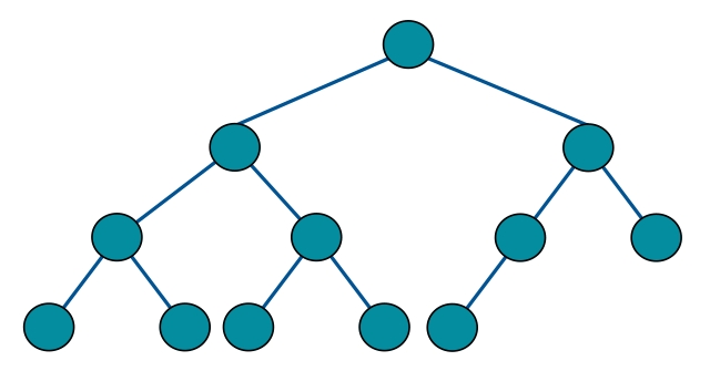 说句题外话,关于这两个定义,中文语境和英文语境似乎有点区别,我们说的完全二叉树对应英文 Complete Binary Tree,没有问题。但是我们说的满二叉树对应英文 Perfect Binary Tree,而英文中的 Full Binary Tree 是指一棵二叉树的所有节点要么没有孩子节点,要么有两个孩子节点。如下: