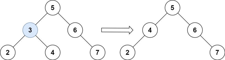 Input: root = [5,3,6,2,4,null,7], key = 3