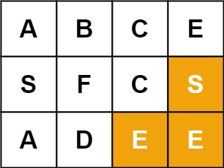 Input: board = [["A","B","C","E"],["S","F","C","S"],["A","D","E","E"]], word = "SEE"