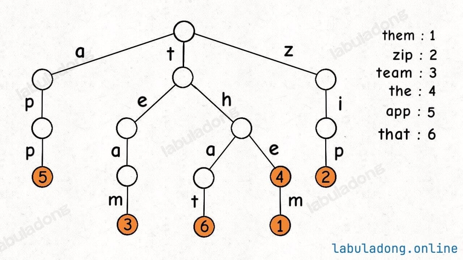 // keysWithPrefix("th") -> ["that", "the", "them"]